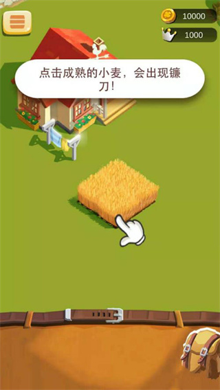 1、在游戏中,初始会有种子和水田,这两个是初始就有的,先点击成熟的麦田进行收割后,会获得相应的麦子,这个时候可以到商场购买东西了。