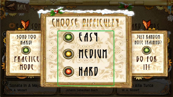 4、选择演奏难易程度,绿色是简单,黄色是中等,红色是困难。
