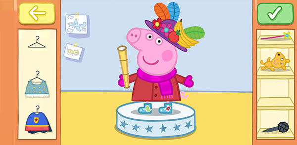 3、玩家还能通过选择不同的服饰、饰品,自由搭配小猪佩奇的造型。