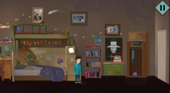 2、拾取桌面上的礼盒,拖至床铺上可触发第一个剧情步骤。