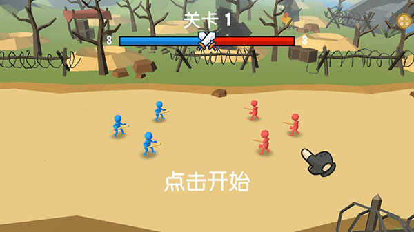 2、玩家成功登录之后,会进入第一关接收新手引导,点击屏幕即可开始游戏,军队会自己战斗。