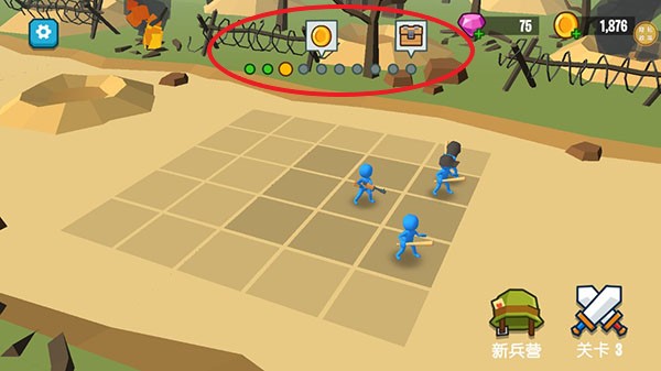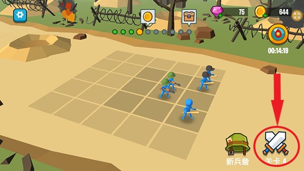 6、玩家点击右下角的关卡即可进入游戏,玩家开战前可以拖动士兵调整站位,以更好的取得胜利。