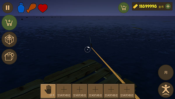 尝试垂钓获取水产,通过食物维持生存值不下降。
