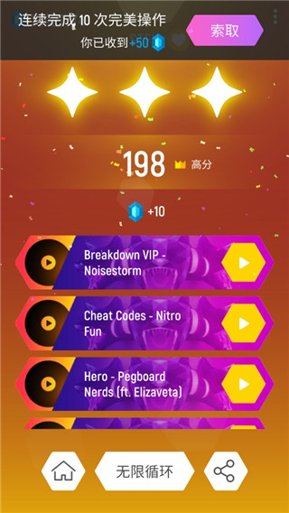 3、丰富多样的音乐曲目,配合酷炫环境和特效,超级好玩。