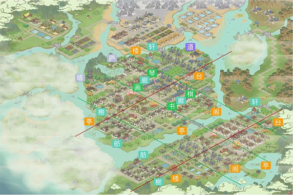 ⑥楼阁区:一楼一阁遥相呼应,汇聚一城文气,翰墨飘香。