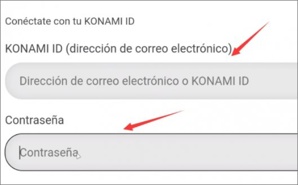 输入已注册的Konami ID与密码,确认后完成账号切换操作。