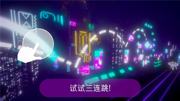 2、游戏最多允许玩家进行三连跳,屏幕右侧依靠划出一条直线来切割前方出现的怪物以消灭它们。
