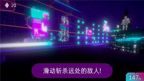 赛博朋克城市,英文名为Slashrun,是将动作跑酷题材和赛博朋克美学进行融合的科幻酷跑手游,向玩家展现节奏感十足的未来忍者冒险。赛博朋克城市下载完成后,玩家将在高楼林立的科幻城市中穿梭,扮演一名为复仇而战的未来忍者,通过三连跳、滑行、连击等流畅动作穿越障碍、沿路收集金币,并利用多种武器与装备去各个击破敌人。