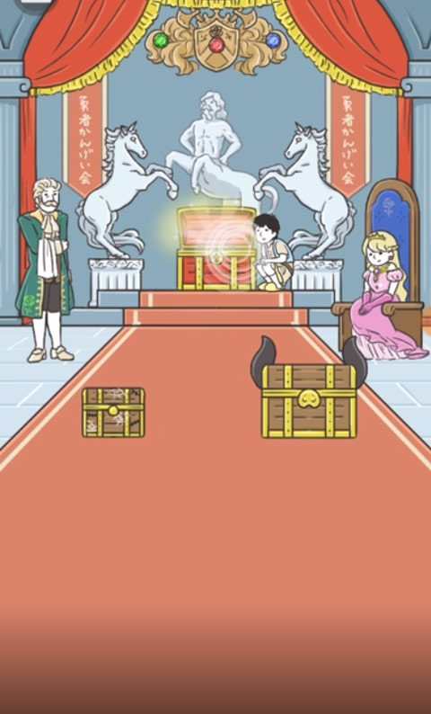 5、将三颗宝石按照正确位置放置后,原本国王的位置会出现一个宝箱,点击宝箱即可换装过关。