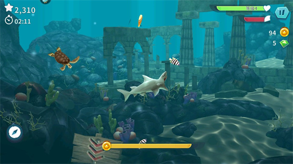 3、感受鲨鱼的终极生存挑战,在惊险的水下世界尽情觅食。