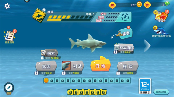 3、解锁鲨鱼幼仔,提升玩家的掠夺技能。