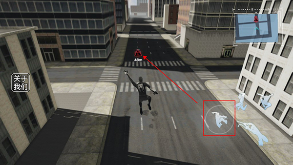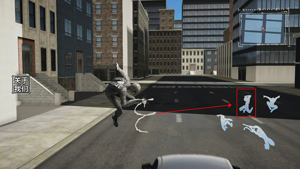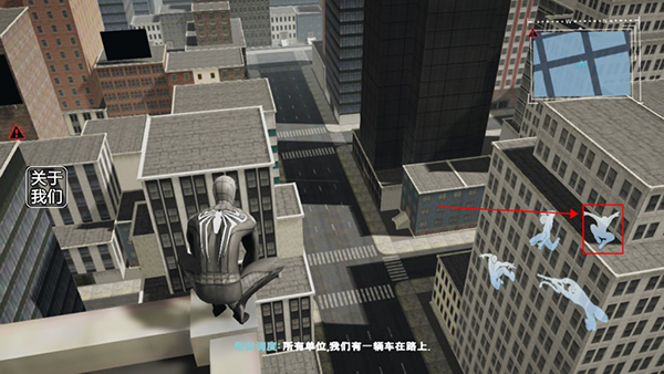 4、靠近车辆时点选蛛丝发射功能,可精准粘附并跃上车顶。