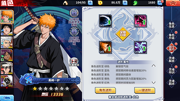 3、新增角色SP角色黑崎一护死神代行消失篇