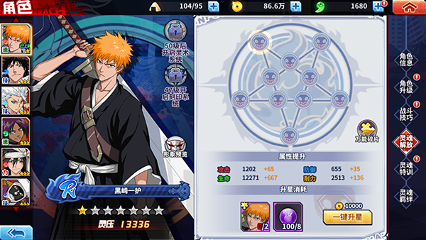 通过灵魂解放升星,搭配灵络装备大幅增强角色战斗能力。