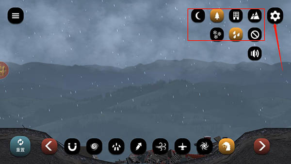 6、点击右上角的设置,玩家还可以自由更改四季和背景等附加效果。