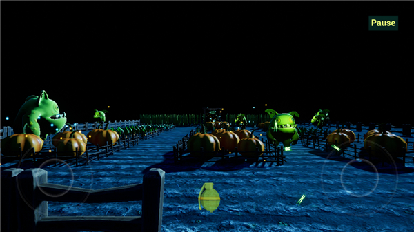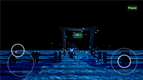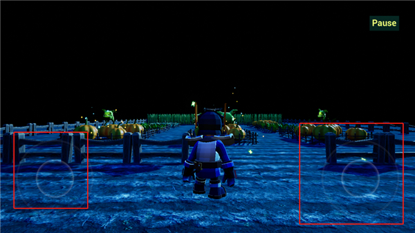 1、玩家进入游戏开始第一关,左侧摇杆控制角色的移动方向,右边摇杆则控制玩家的视角。