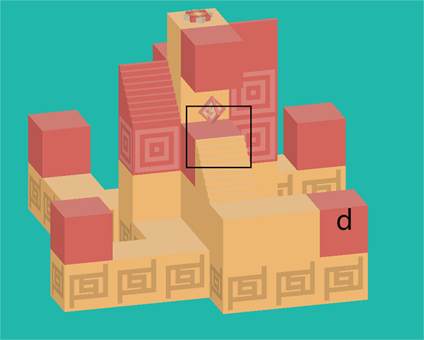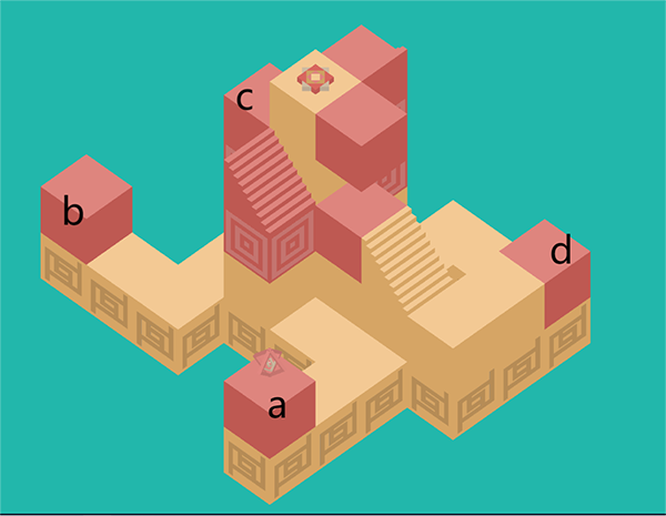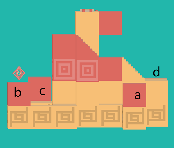 3、用同样方法前往d点后,继续操作移动至高一层平台。