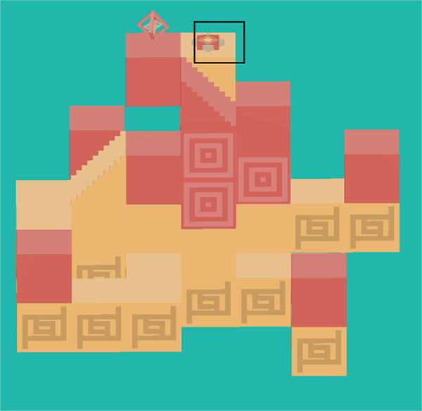 在锁定视角下,角色仅能在红色块状区域内前行。