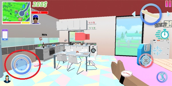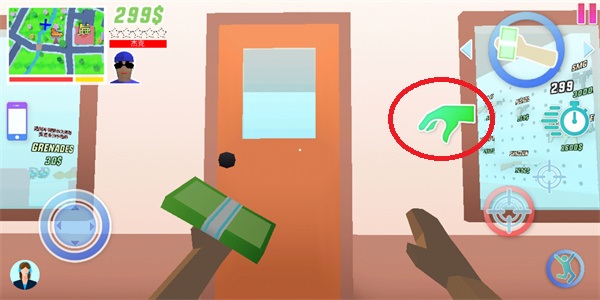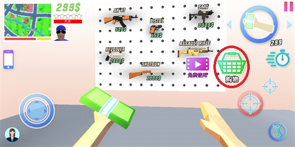 6、移动轮盘是用来控制玩家进行移动的主要按键,可以说没有它你将寸步难行,在地图的右边显示着现在的血量以及金钱,金钱是用来购买道具以及在游戏内游玩的主要物品,玩家尽量多多收集,屏幕的右边的按钮都是主要以交互为主的,例如攻击瞄准等功能。