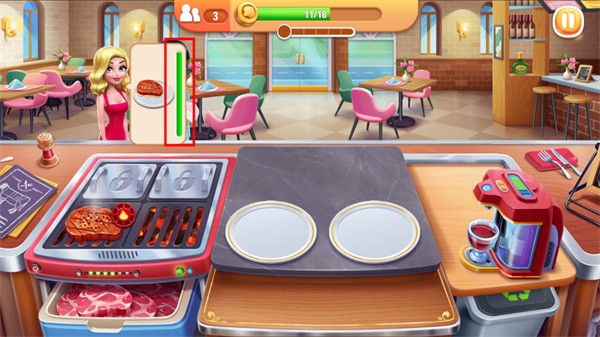 4、注意蓝色框框内的进度条,不要让食物糊了。