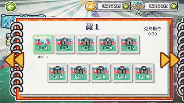 3、资源养成系统:通关后获得金币和卡片等资源,用于升级角色和解锁新怪物。