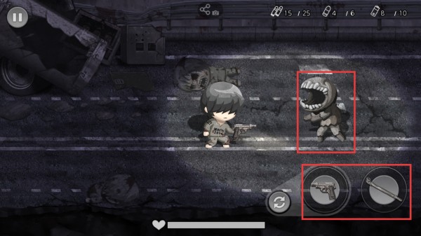 左侧滑动移动,右侧切换或使用武器,注意血量,关卡道具可补充弹药。