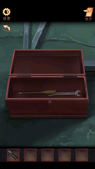 3、检查推车找到钥匙,开工具箱后收集开门道具。