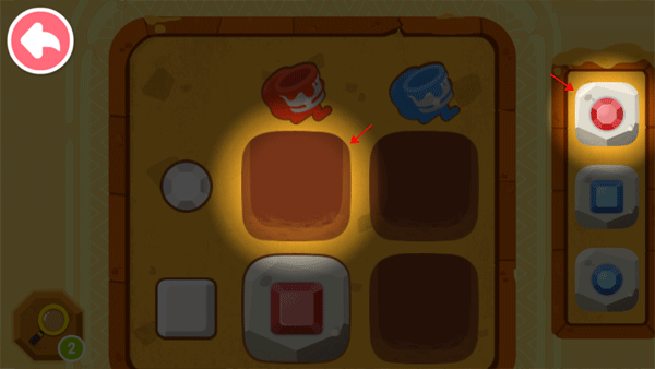 3、第一关左边和右边的都有东西,左边上方对应的是左边图案的颜色,左边的左侧对应的是放置在小坑里面的图形,将图形放到正确的位置就可以通过。