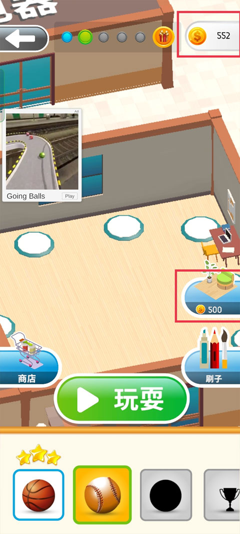 5、还可以用金币购买刷子、颜料等,只要拥有足够多的金币即可购买更多道具和家具。