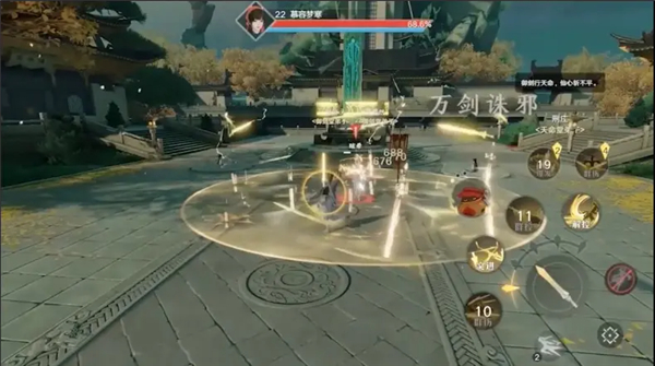 跟随任务可触发战斗,玩家可通过技能对战敌人。