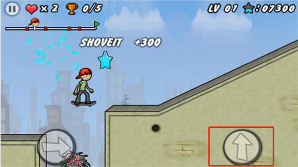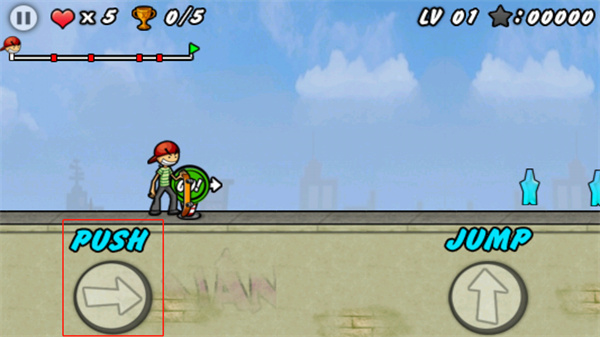 3、利用PUSH按钮推进滑板速度,掌握节奏顺畅通关。