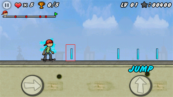 4、点击JUMP按钮跃过障碍,保持连贯动作确保顺利完成。
