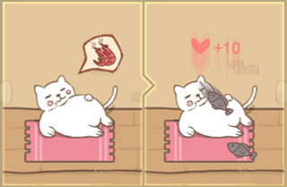 3、可以去点击气泡就可以进行喂食,猫咪就会支付一笔小鱼干。