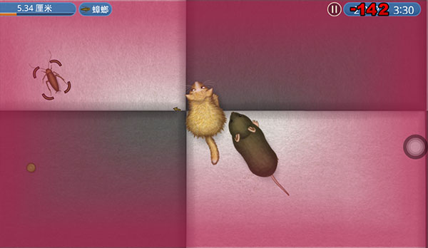 4、轻触屏幕,猫就会移动到啊哪个位置,吃比玩家小的东西,蟑螂、豌豆。