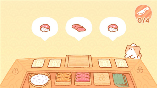 小熊寿司吧中文版可以轻松的体验到休闲有趣、极度治愈系的经营玩法。在这里有着超多的卡通呆萌的动物形象、多变的游戏场景和各种各样的道具等等。玩家能够完全的沉浸体验与解锁,带来非常轻松愉快的模拟经营体验。在视觉上可以得到享受,也能够制作各种不同口味的寿司。小熊寿司吧中文版下载安装后可以看到整体以极度清新舒适的暖色调风格效果呈现来更好感受。