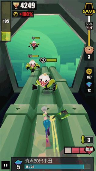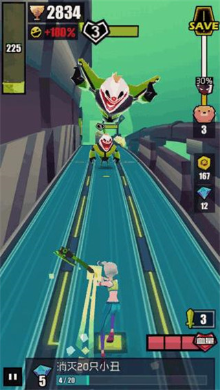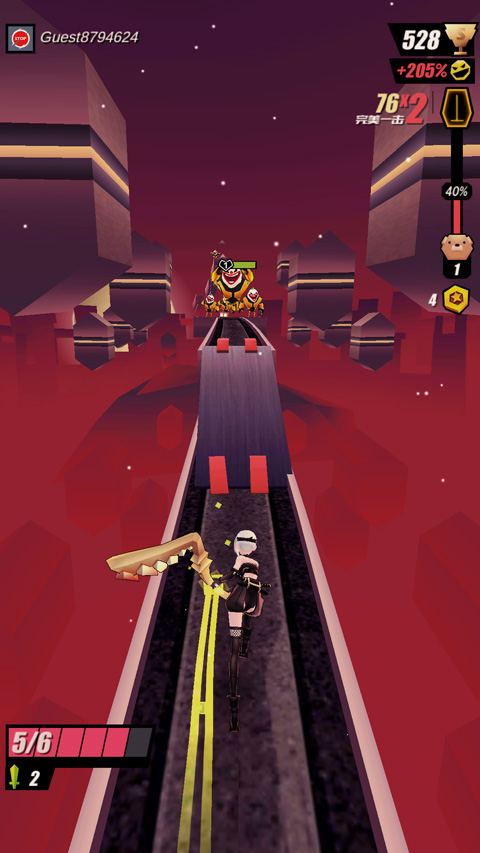 3、不过连贯的动作带来的快节奏操作,在跑道有限制的场景中,容易让人忘记主次。你会发现跑着跑着容易把重点放在打怪上,而忽略了跑酷的部分,然后轻易死在了简单的障碍上。所以在玩的时候别被怪物分了心,还是要留意路上的障碍物。