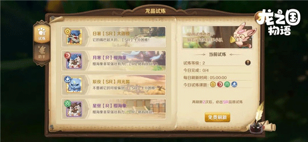 当然,如果觉得自己的实力和技巧足以挑战SR难度的龙晶试炼,也可以刷新当前龙晶试炼——刷新一定次数,必出SR难度试炼。
