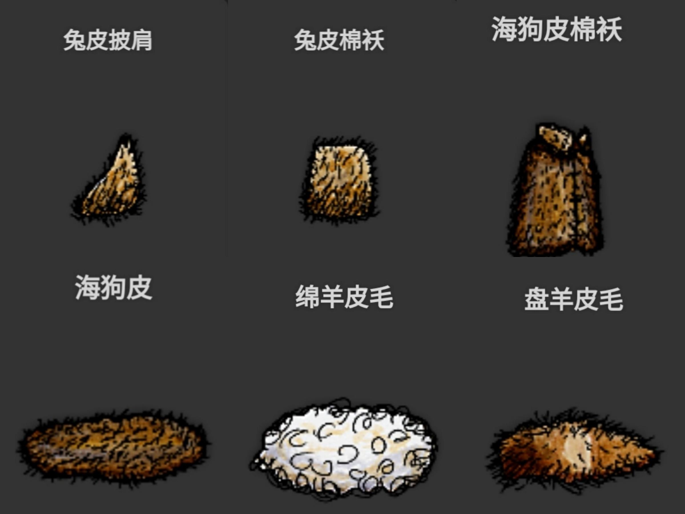 ①海狗皮、绵羊皮毛、盘羊皮毛可以直接穿