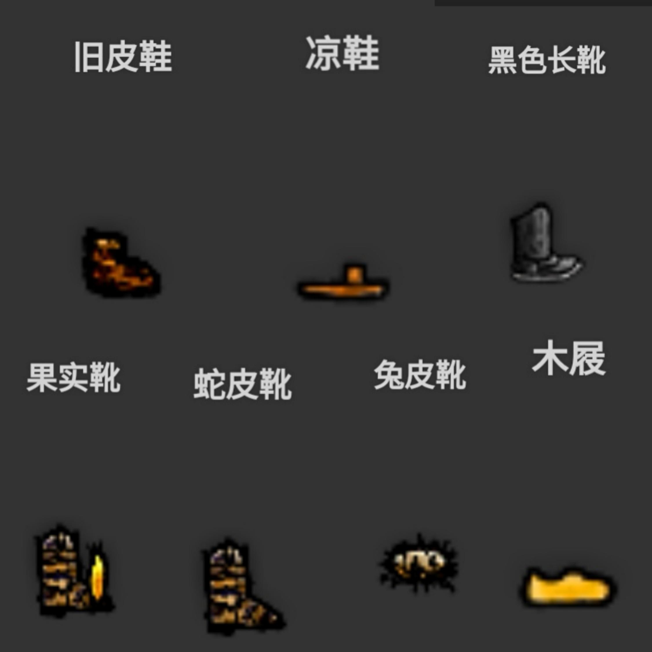 ④果实靴=蛇皮靴+仙人掌果实【损】(脱鞋的时候果子会被磕下来,必要时可以当储备粮ヾ(*Ő౪Ő*))