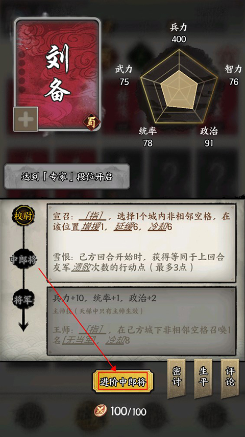 2、在拥有的武将英雄进行进阶,提高武将阶级和去解锁更多技能。