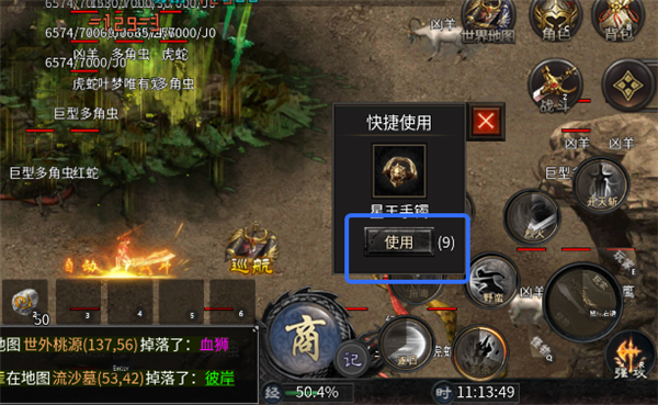 4、打怪可随机掉宝,点击拾取立刻穿戴,快速提升战力。