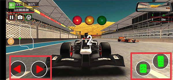 4、左侧红键操控方向,右侧绿键负责车辆前进或倒退。