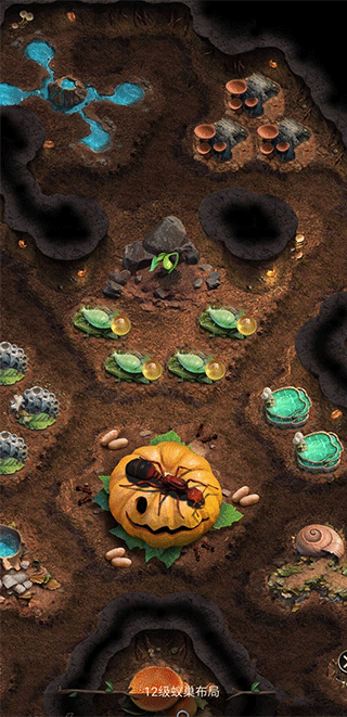 4、玩家们可以在游戏的布局中查看工蚁孵化地的具体位置,将它们提升到最高等级,不同建筑所需要的占地面积都是不同的,占地面积越大,所需要工蚁数量也就越多,所以尽量优先将占地面积为一的建筑先建完。