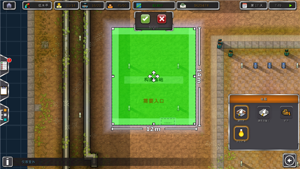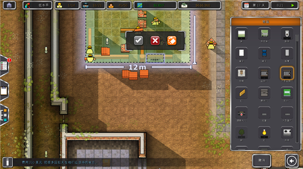 3、可从侧边菜单挑选装饰设施,让监狱看起来更完备。