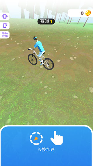 1、从本站下载并安装,打开游戏后,长按屏幕是游戏开始,也是自行车加速。
