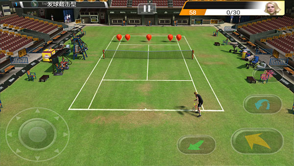 3、对方发球后,左下角的按钮用来控制角色迎球方向。