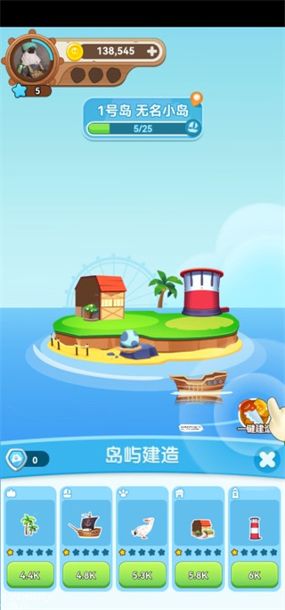 当前岛屿建成后,可前往新的岛屿继续挑战。