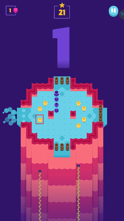 玩家可以去控制蛇不断向上攀爬,吞食闪闪发光的物体和升级道具。