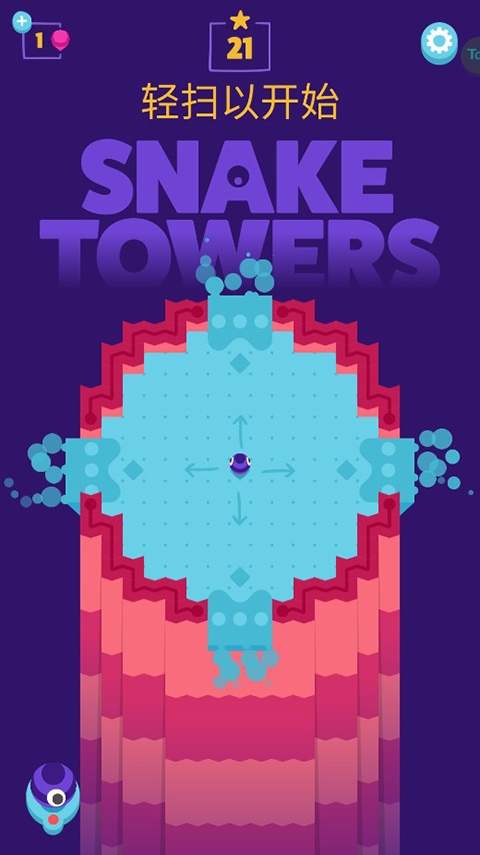 1、打开进入蛇塔游戏后,玩家可以通过滑动上下左右四个方向来控制小蛇移动和自由选择四个方向的关卡。