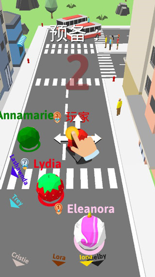 二、该游戏的玩法十分简单,用手指滑动屏幕来移动小球的位置,前期需要从小物品开始,比如红绿灯、路灯、行人等比较小的,等自己变大一些,之后就可以去粘树木汽车等东西,紧接着当玩家可以粘房子和车子的时候,就可以随意浪了,因为基本上什么东西都可以粘在身上,但是也要注意躲避比你体型大的玩家,可以在屏幕的两侧观察他们的位置。